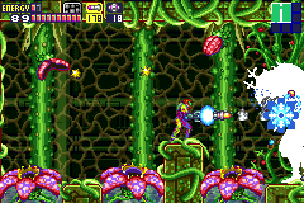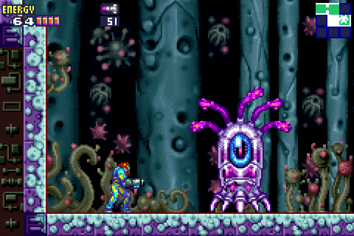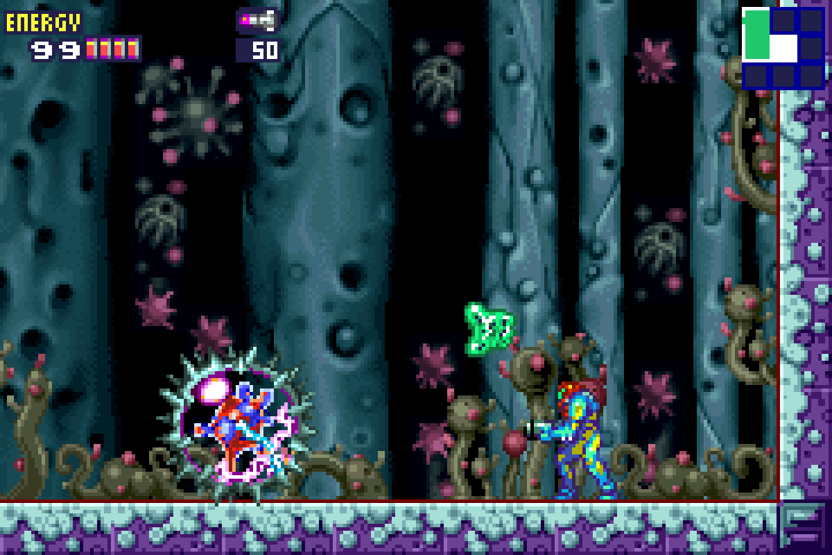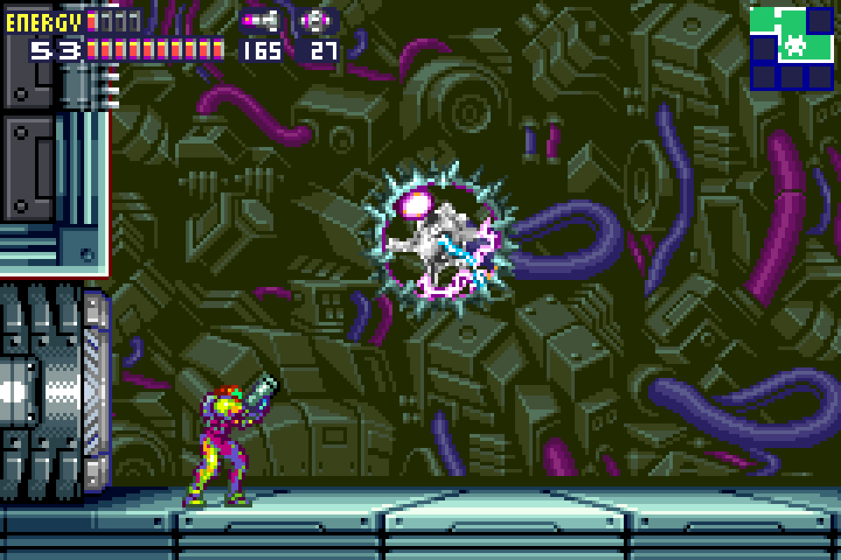 Just keep firing and eventually, a smaller, regular Core-X will pop out. Now, switch over to Missiles and finish him off. You’ll be rewarded with the VARIA SUIT once you’re finished. (Worth noting – the Fusion Varia Suit may be the ugliest suit in the Metroid series, don’t @ me). Now, those frozen X don’t stand a chance!