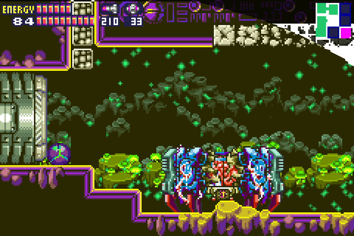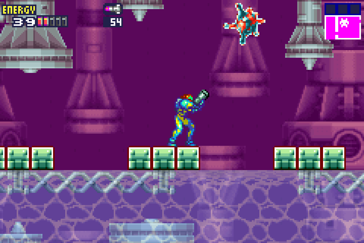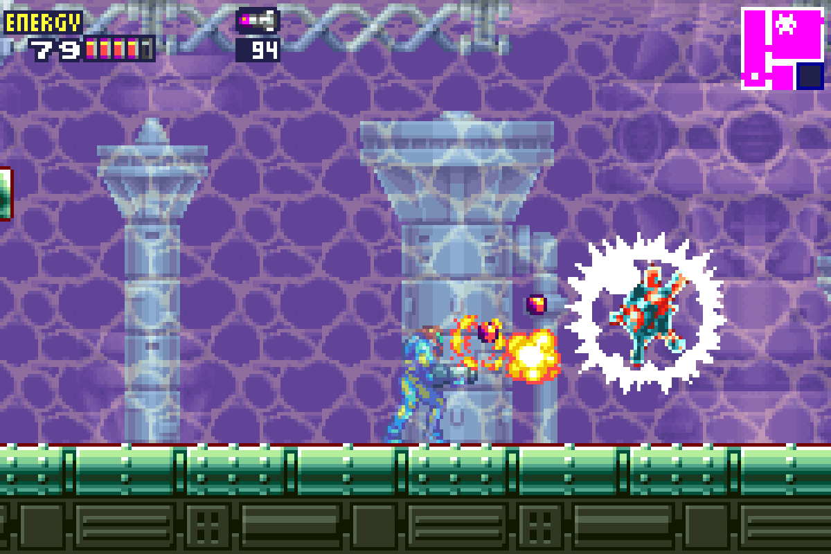 I’ve experimented a few different ways to fight this fight, and the most effective method I’ve found is one that actually seems a little daunting – fight the SA-X at close range in close quarters. If you choose, you can make use of the two floating platforms above you, get up there and wait for the SA-X to up, blasting it a charged shot and then running back down after only to lead it back after and repeat the cycle, but I find that not only does this take forever, but your chances of a mistime and getting blasted by the Screw Attack jump up exponentially since this strategy involves the SA-X jumping to follow you a lot.